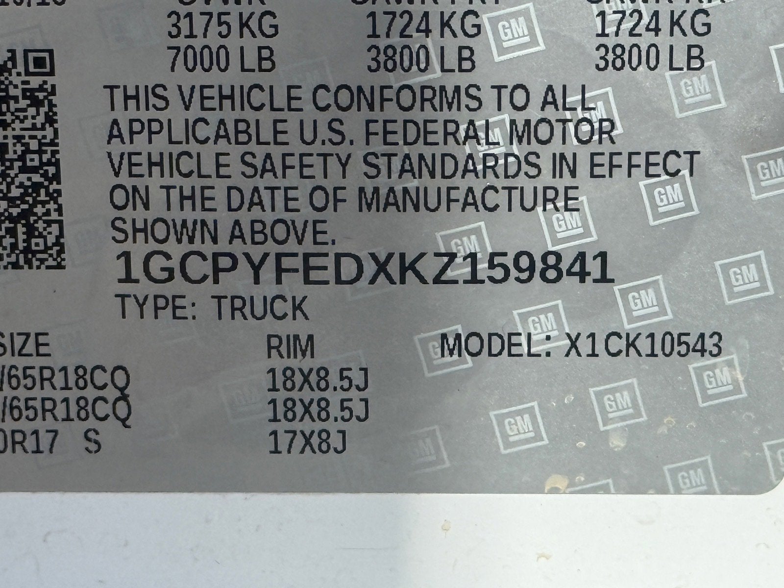- Spare Tire Order Code: XCQ