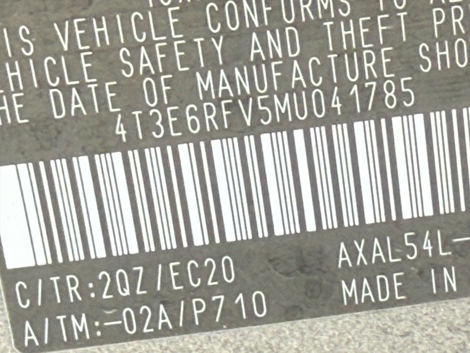 4T3E6RFV5MU041785
